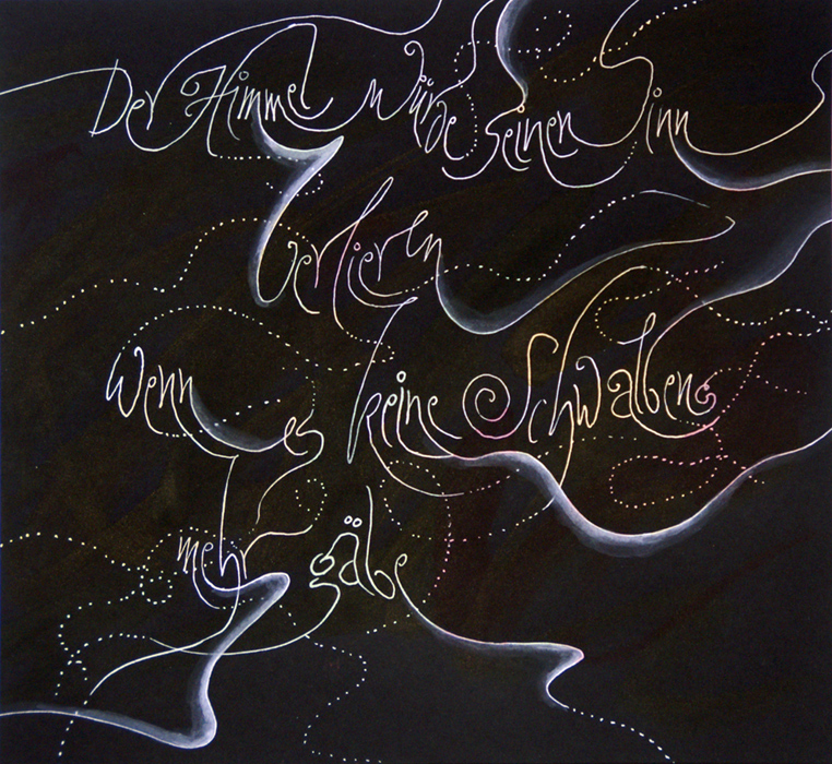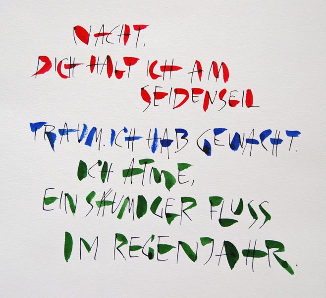 Ob klassische Kalligrafie oder freies Schrift-Bild: eine lockere Hand, Formgefühl und jahrelange Übung sind das Geheimnis.