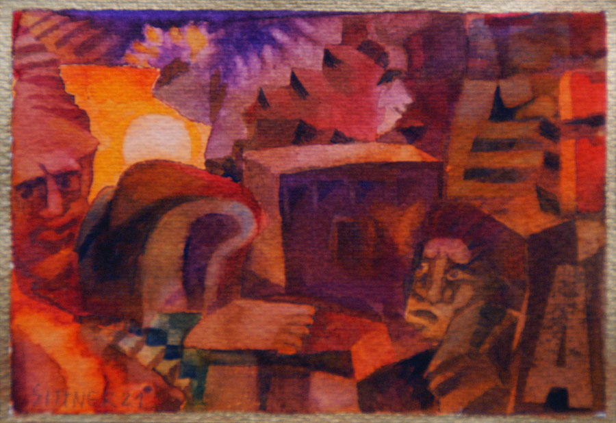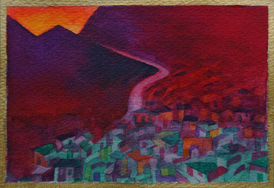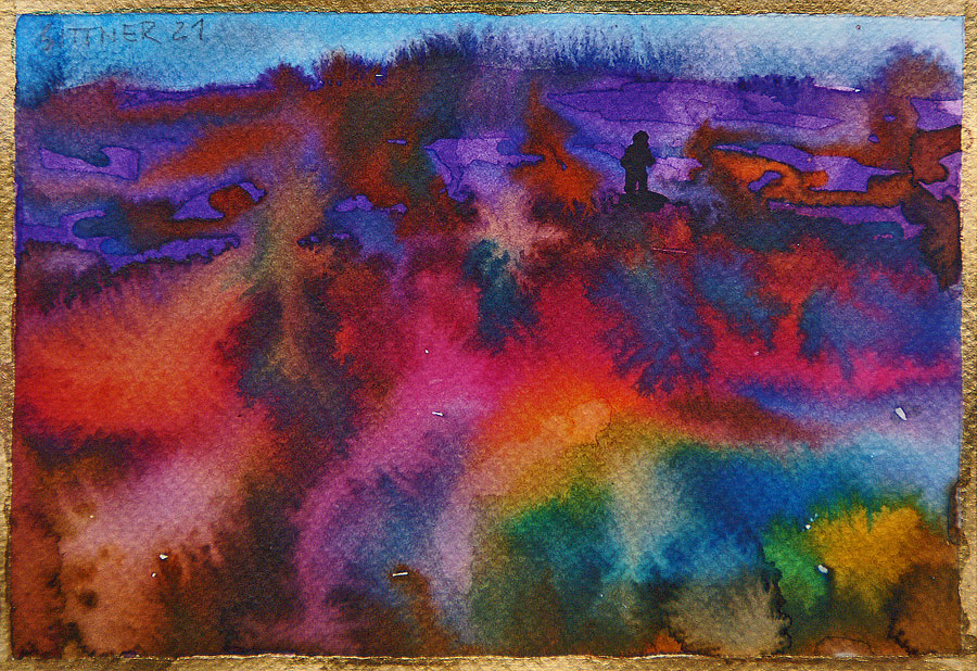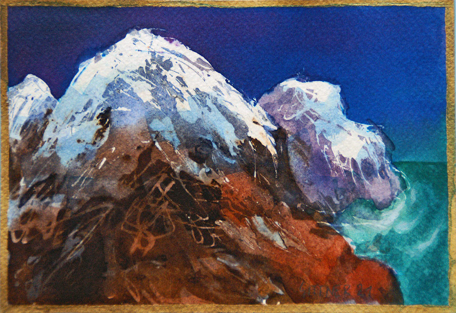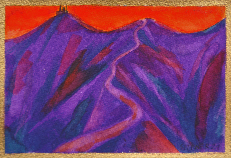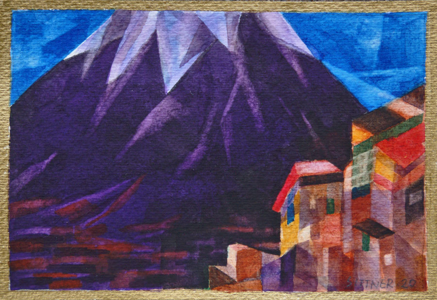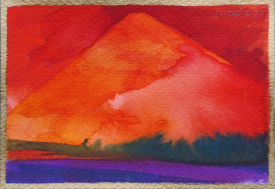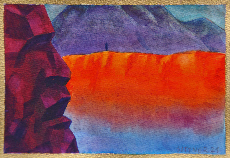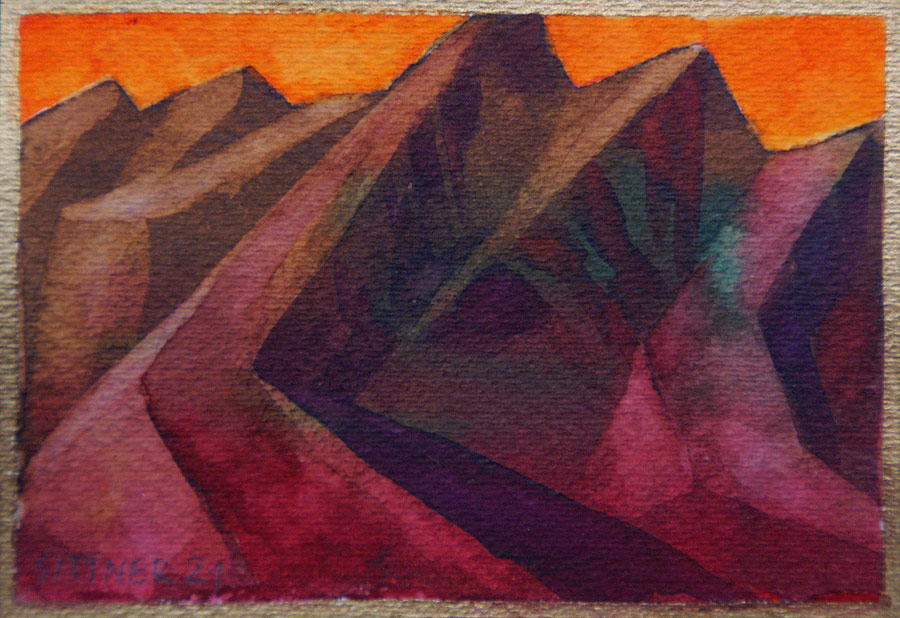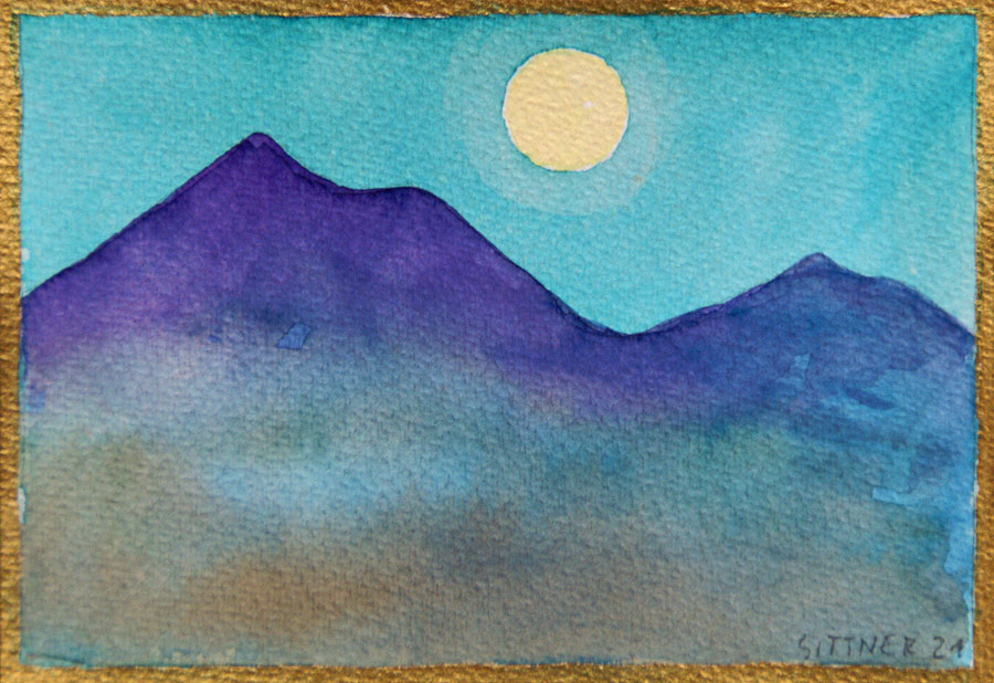 deren Schatten in komplementärem Blauviolett versinken - und als Abschluss der Szene geht auch noch der Vollmond über der Andenkordillere auf...